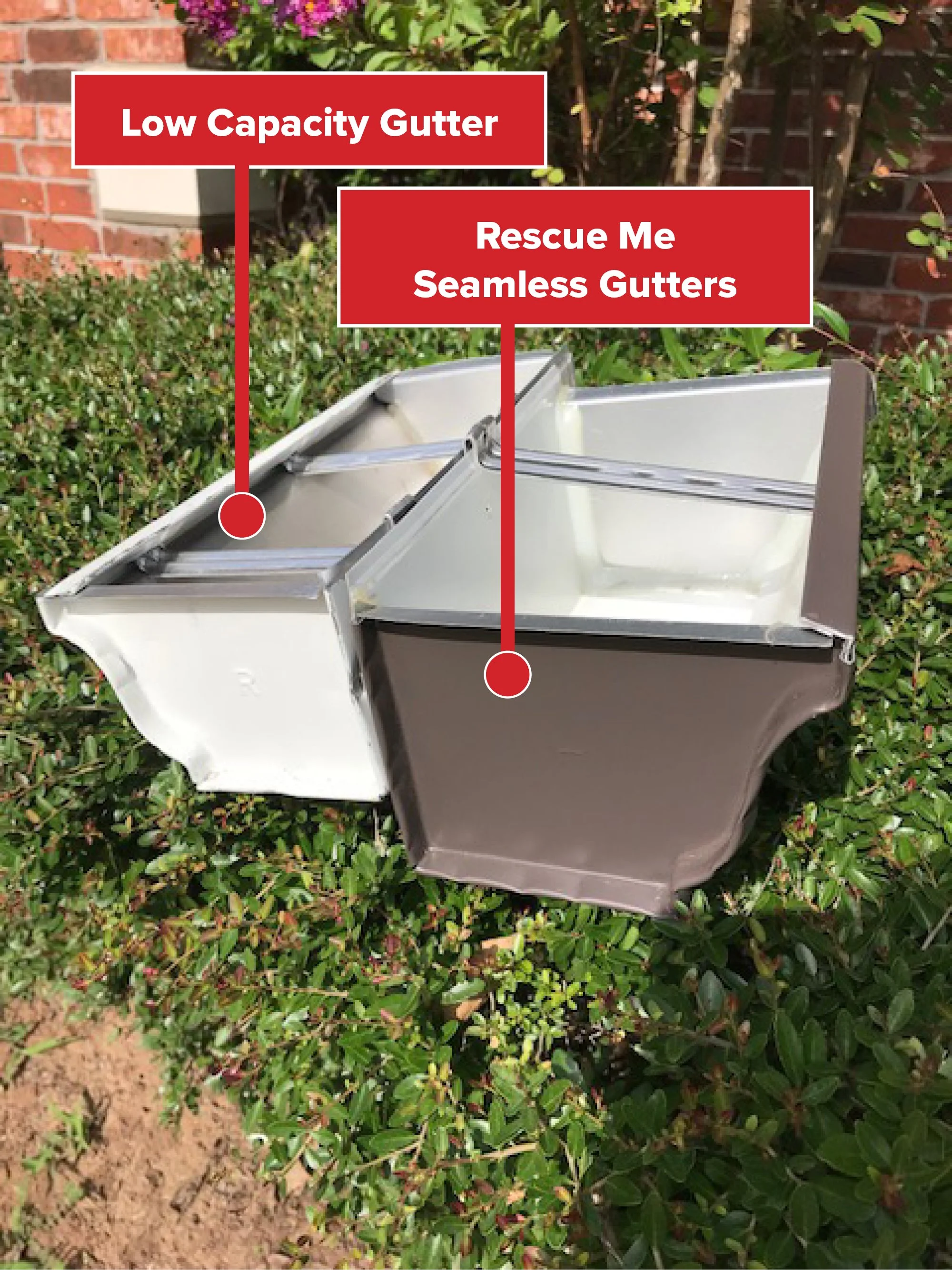 Rescue Me Seamless Gutters provide a high-capacity efficient water flow system. Our gutters channel approximately twice the amount of damaging water resulting in greater home protection. Benefits are reduced leakage coupled with a longer lifespan compared to traditional gutters.